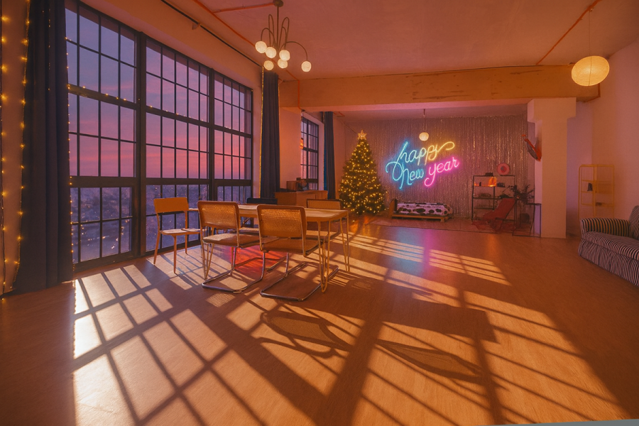 Зал Cozy - белоснежная елка, зал в бело-розовых тонахЗал Apart - зеленая заснеженная елка , зал в красно зеленых тонах с золотыми деталямиЗал Serebro-зеленая заснеженная елка, в темно синих оттенках с серебрянными деталямиВнимание! в зале White Room елки...