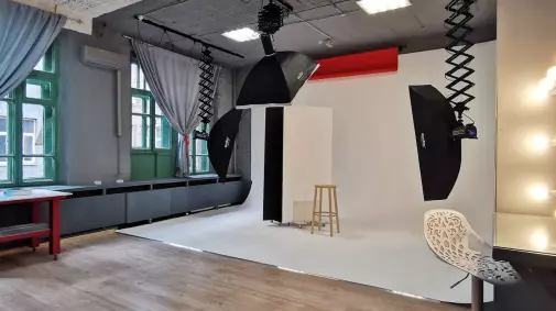 Также для удобства наших гостей мы готовы предложить просторную зону ожидания перед съемкой, мини-кухню и бесплатную парковку.