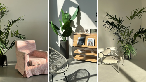 Белые стены и бетонный пол делают кадры чистыми и стильными, а много зелени и фактурная мебель добавляют естественности и характера.