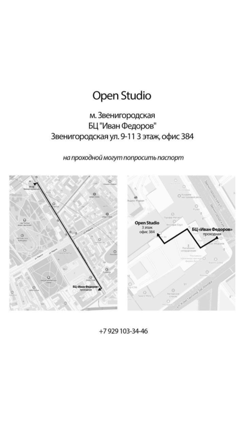 м. Звенигородская, Звенигородская ул. 9-11, БЦ"Иван Федоров" 3 этаж Офис -384,Open Studio!