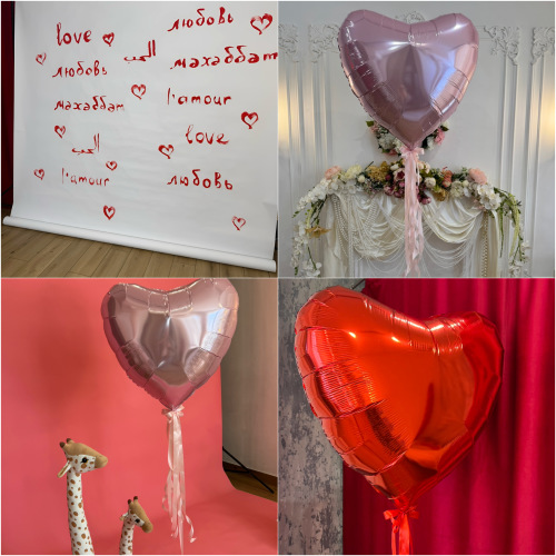 Мы расписали белый фон словами "Любовь" на разных языках! Подготовили тканевый бордовый бархатный фон, и конечно же бумажных фонов у нас много, от романтических бежевых и розовых, до ярких красных, базовые цвета конечно тоже есть , белый, серый, черный и тд, и как и каждый год: огромные ШАРЫ