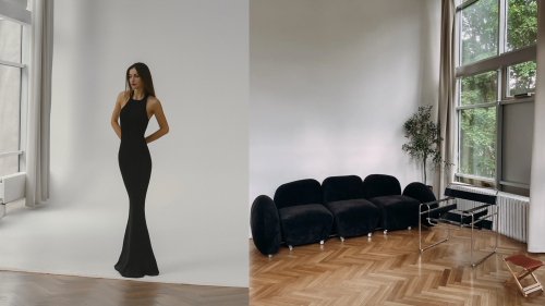 Циклорама 5×4,5 м, чёрный диван wabi-sabi и кресло Wassily chair — всё для съёмки, где главный акцент на тебе.