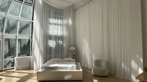 — воздушные белые шторы, которые можно перемещать по залу;