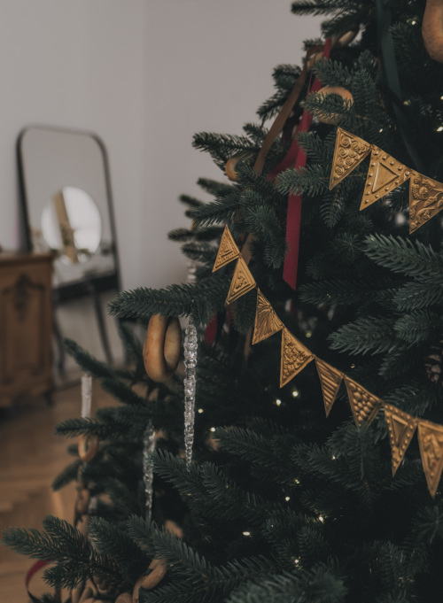 Ленты, флажки, шишки, стеклянные сосульки и сушки - эта ёлка стала не просто декором, а атмосферой. Мягкой, объёмной, праздничной.
