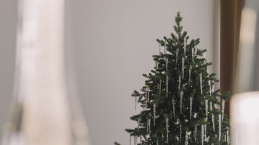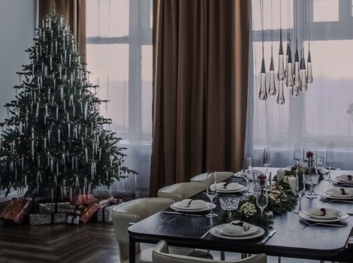 Ель с прозрачным ледяным декором, минимальная сервировка и ровный свет — всё собрано так, чтобы создать ощущение спокойствия и тепла ✨