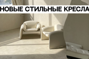- Дизайнерские кресла песочного цвета из ткани «рогожка»
