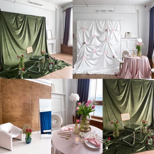 В зале «Квартира» бархатный оливковый фон и красные тюльпаны