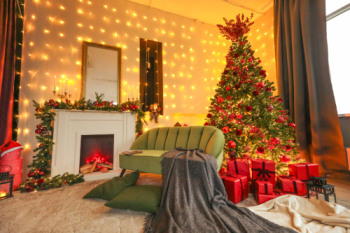 Светлая и уютная Сканди-зона с диваном и подарками.