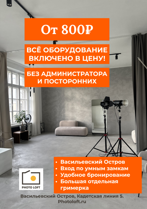 Photo LoftСтудия без администратора и посторонних от 800руб! Оборудование включено. Скидка 10% по промо-коду FAMILY.