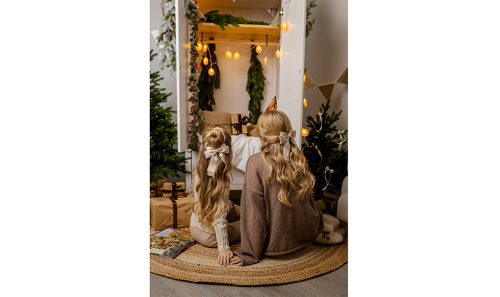 Можно сделать сказочные съемки в нашей новой локации. Самый уютный белый шкаф с ручками зайчиками и огоньками. Он украшен искрящейся гирляндой, флажками и ёлочными веточками. Поймайте момент семейного тепла и радости на Новый год!