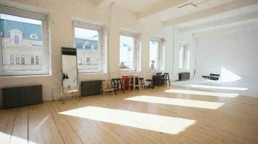 Светлый зал на 80 кв.м. с белыми стенами и бетонным полом — универсальная площадка для любых съемок. Огромная циклорама 5×6 м, стильная мебель в духе баухаус, розовый акцентный стул и детали из хрома делают PORTAL пространством, где легко...