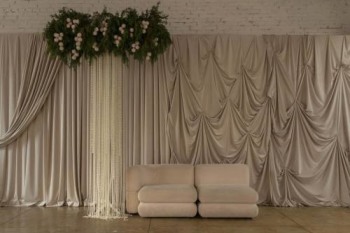 Красивый, брутальный, эстетичный и загадочный Зал Дуглас в фотостудии Mirseliz с локацией бара, ретро светильниками и декорациями, фактурными стенами, зоной кухни, бархатными диванами, зеркалом.