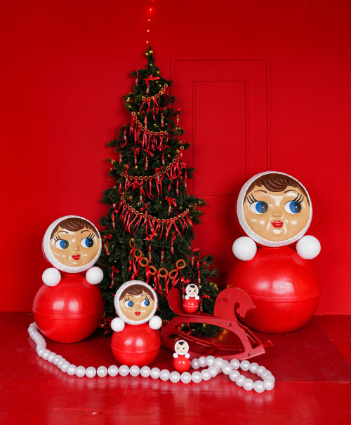 Ттри большие НЕВАЛЯШКИ на красном фоне