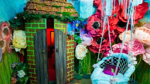 Когда хочется добавить в кадр динамику, даже сидя — выбирай зал Portal. Тут тебя ждёт тканевое изогнутое кресло, которое само по себе выглядит как арт-объект. Минимализм + футуризм = стильный сет без лишних деталей. Зал Portal — это 80 м²...