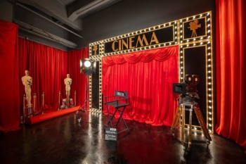 • четыре циклорамы разных цветов (две белые, чёрная и серая), цветные фоны, интерьерные зоны