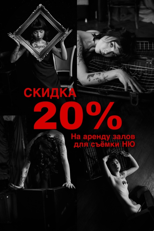 Если вы снимаете чувственное ню, мы готовы предложить вам скидку двадцать процентов на аренду зала Винтаж от двух часов до конца мая!
