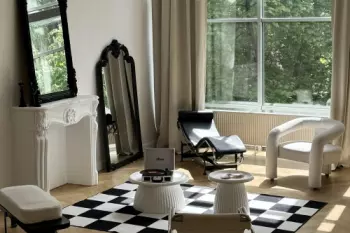 Интерьер с нежными пастельными оттенками, стильной мебелью и винтажными деталями. Большие окна с легкими занавесками пропускают мягкий свет, создавая романтичную и мечтательную атмосферу для фотосессий....