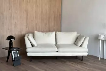 Стильный зал с коричневым ламинатом и деревянной стеной!...