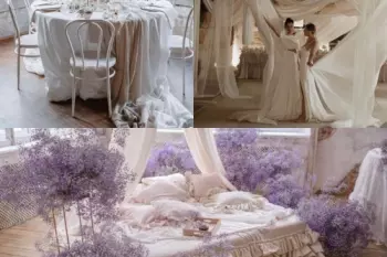 АНОНС! По многочисленным просьбам открываем бронирование на новый декор с живыми цветами сиреневой гипсофилы. В зале будет несколько локаций. Референс: Кровать, свисающие с потолка...
