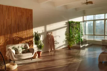 Зал Green с тропическим душем. Душ с горячей водой!В зале: - 2 источника Profoto D1 500 Air (разные насадки) - Живые растения - Бежевый диван - Кровать - Большая книжная полка - Много разного реквизита...
