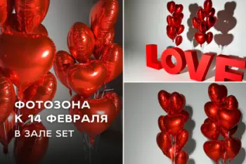 Фотозона к 14 февраля уже установлена в зале SET ❤️ Расставляйте на циклораму букву и шарики и проводите романтичные съемки. Также вы можете перемещать реквизит по всему залу. Дополнительно вы можете использовать...