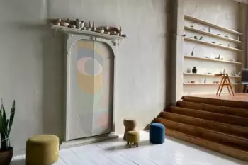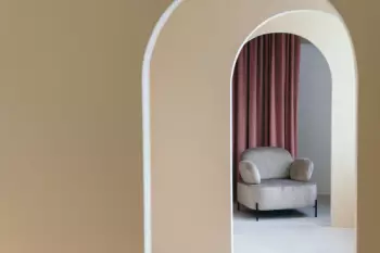 MERGE — светлый зал с минималистичным интерьером. Это локация с необычным деревянным креслом, текстурными стенами, двумя яркими акцентными креслами, уютным бежевым диваном и стильным реквизитом....