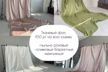 Для ваших съемок можно взять в аренду тканевые фоны:-пыльно розовый- оливковый бархат- белый жемчужныйДлина 4 мШирина 2,5 мАдминистратор поможет установить)Забронировать залы по ссылке:https://pro.ugoloc.ru/photo_zall...