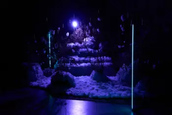 В зале "Бархат" (105 кВ.м.) собрали уникальную зимнюю локация из мха На ветках сияют сосульки, по листкам расстелен искусственный снег, поверх газона множество пуха и для дополнения атмосферы реквизит...