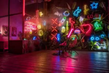 Зал Space невероятно разнообразен, тут есть:- старинная библиотека;- неоновая локация с тропиками;- простая белая кирпичная стена;- Световая стена из горизонтальных белых ламп Все это отлично уживается...