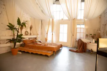В зале Mono вы найдете минималистичную интерьерную локацию с имитацией спальни: матрас с белым постельным бельем, небольшой рабочий столик, лампу-торшер с круглыми плафонами. Забронировать...