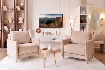 Интерьер зала выполнен в стилистике Mid-century modern — дизайне 50–60-х годов XX века, с преобладанием тёплого дерева, геометричных форм, винтажного текстиля и декоративных элементов.Отлично...