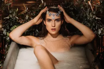 Посмотрите, какие красивые кадры получаются, если добавить в воду шиммеры и украсить фон цветочными декорациями. Отлично дополнит концепцию проработанный образ модели и аксессуары.Повторить эту съемку...