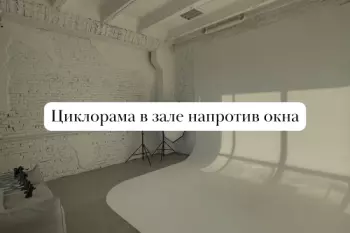 Зал с белой циклорамой 5х5 метров. Окна дают возможность снимать при естественном свете, при необходимости окна закрывают шторы блэкаут. В зале есть локация с фактурными стенами из живописного бетона и...