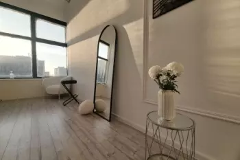 Небольшой зал с панорамными окнами и идеальным дневным светом.В зале красивые фактурные стены, зеркало в полный рост и модные предметы интерьера.За счет бюджетной цены зал...