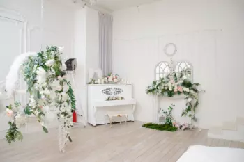 зал Облака украшен весенними цветами и отлично подойдет для свадебной фотосессии...