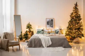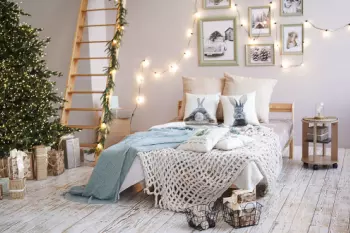 Удобство этого зала в том, что вы можете воплотить сразу несколько идей в одном зале. Так например в локации с кроватью и елкой можно передать всю атмосферу предновогоднего домашнего уюта. В то же время...