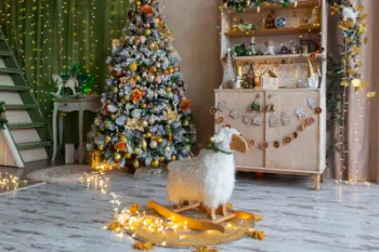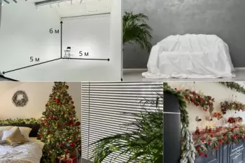 Новогодние декорации в светлом зале. В нашей студии царит атмосфера праздника! Две новогонодние фотозоны, множество детского реквизита. Детская спальня, подвесные качели кокон, качалка овечка, маленкие...