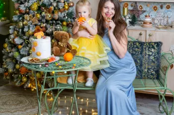 Новогодние декорации в светлом зале. В нашей студии царит атмосфера праздника! Две новогонодние фотозоны, множество детского реквизита. Детская спальня, подвесные качели кокон, качалка овечка, маленкие...