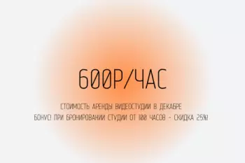 Добро пожаловать в Видеостудию на Савёловской! В декабре стоимость её аренды - всего 600 рублей/час! Бонус! При бронировании студии от 100 часов - скидка 25%! Аренда зала студии...