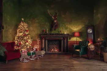 Зал Нео в скандинавском стиле в новогоднем оформлении с ёлкой! Уютный и праздничный зал для волшебных, эстетичных, ярких фотографий в красных и зелёных цветах! Идеально для новогодних, семейных, детских,...