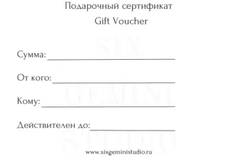 Для гостей Six Gemini Studio мы подготовили специальные предложения. 1. Сертификат на повторное посещение. При первом вашем посещении мы предлагаем вам именной сертификат номиналом 1000 рублей...
