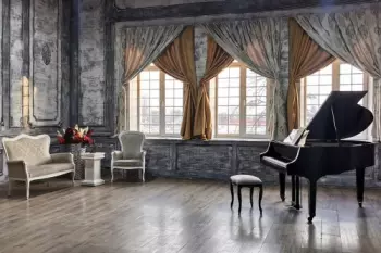 Фотостудия в дворцовом стиле с роялем.Большой черный рояль является не только украшением зала — на нем можно играть и записывать живой звук! Площадь - 90 кв.м., высота потолков - 6 метров. 2000 р/час...