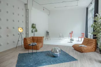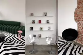 В зале SIMP вас ждут локации с нотками эклектики: кусок кирпичной стены для любителей лофта, графичный ковер зебра, зеленый диван и два пуфа, создающие имитацию квартиры, которые точно полюбятся вам ...