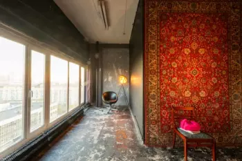 Современный зал с огромным окном, вдохновленный урбанистикой большого города в сдержанной цветовой гамме. Материалы: бетон, металл, стекло и кожа, в сочетании со стильной мебелью. В зале BETON вы найдете:...