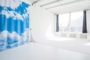 Большой светлый зал с огромными окнами, стильным реквизитом и циклорамой 5х5 у окна. Расписание и бронирование на сайте www.obscur.pro...