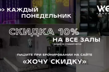 Снимайте со скидкой 10% по понедельникам в любом зале WE CAMPUS!Как это сделать?Переходите на наш сайт https://campus.we-one.ru/ → Выбирайте понравившийся зал → Бронируйте в два...