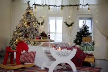 Пышные ёлочки , камин и уютная домашняя атмосфера в нашей студии уже ждёт вас бронирование от 1 часа GoHome21.ru ...