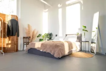 Просторный зал с окнами на южной стороне, благодаря этому в зале солнце с рассвета и до заката в солнечный день. Но и в пасмурную погоду в зале достаточно светло так как перед окнами нет других зданий...