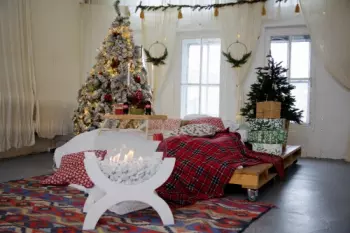 В зале Grand будет волшебная новогодняя локация. Планируем поставить несколько пушистых снежных елочек, которые можно легко перемещать по залу. Локация с летящими тканями будет украшена гирляндой,...