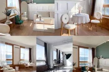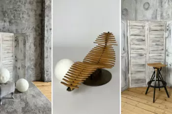 MERGE — светлый зал с минималистичным интерьером. Это локация с необычным деревянным креслом, текстурными стенами, двумя яркими акцентными креслами, уютным бежевым диваном и стильным реквизитом А...
